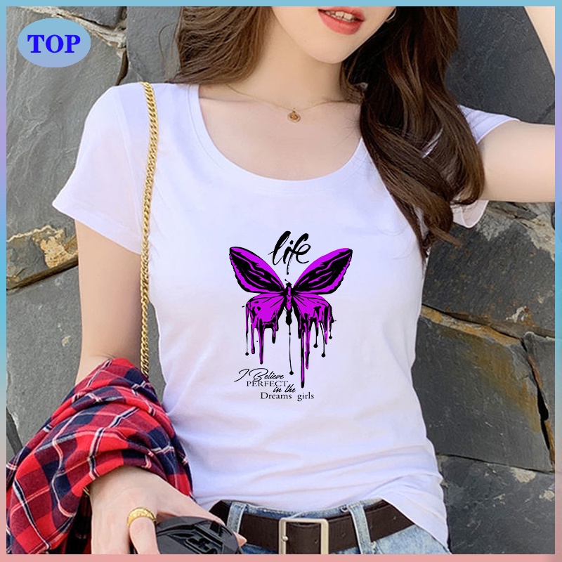 Tshirt for Woman Korean Style Printed White T shirt Women Ladies Short Sleeve T Shirts Tops Very well made.