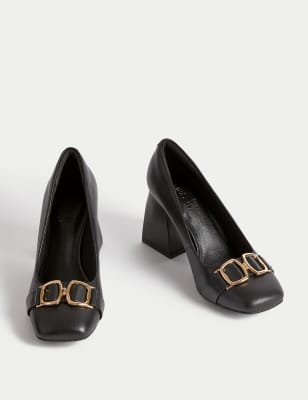 Wide Fit Leather Block Heel Court Shoes M S Collection M S Very well made.