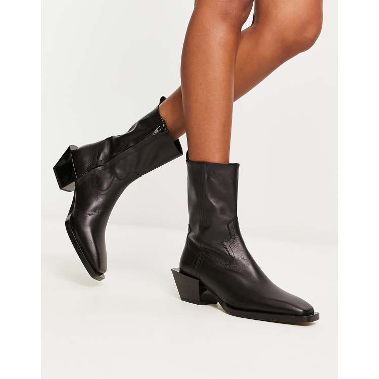 ASOS DESIGN Arrow leather western ankle boots in black Very well made.