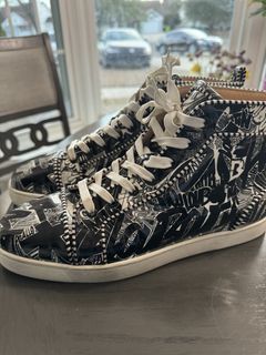 Christian Louboutin Black White Graffiti High Top Sneaker Very well made.