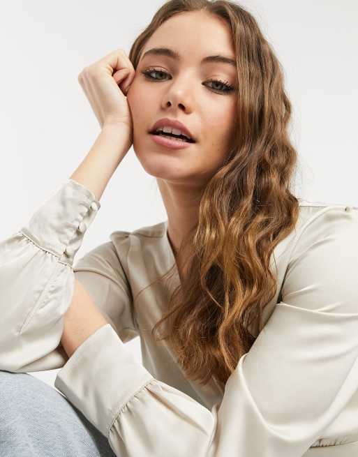 Abercrombie Fitch satin long sleeve blouse in champagne ASOS Very well made.
