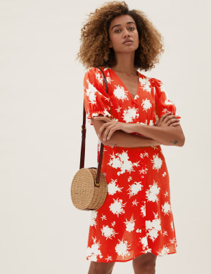 Floral V Neck Short Sleeve Mini Tea Dress Very well made.