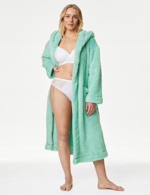 M S Womens Fleece Hooded Long Dressing Gown Light Blue Light Very well made.