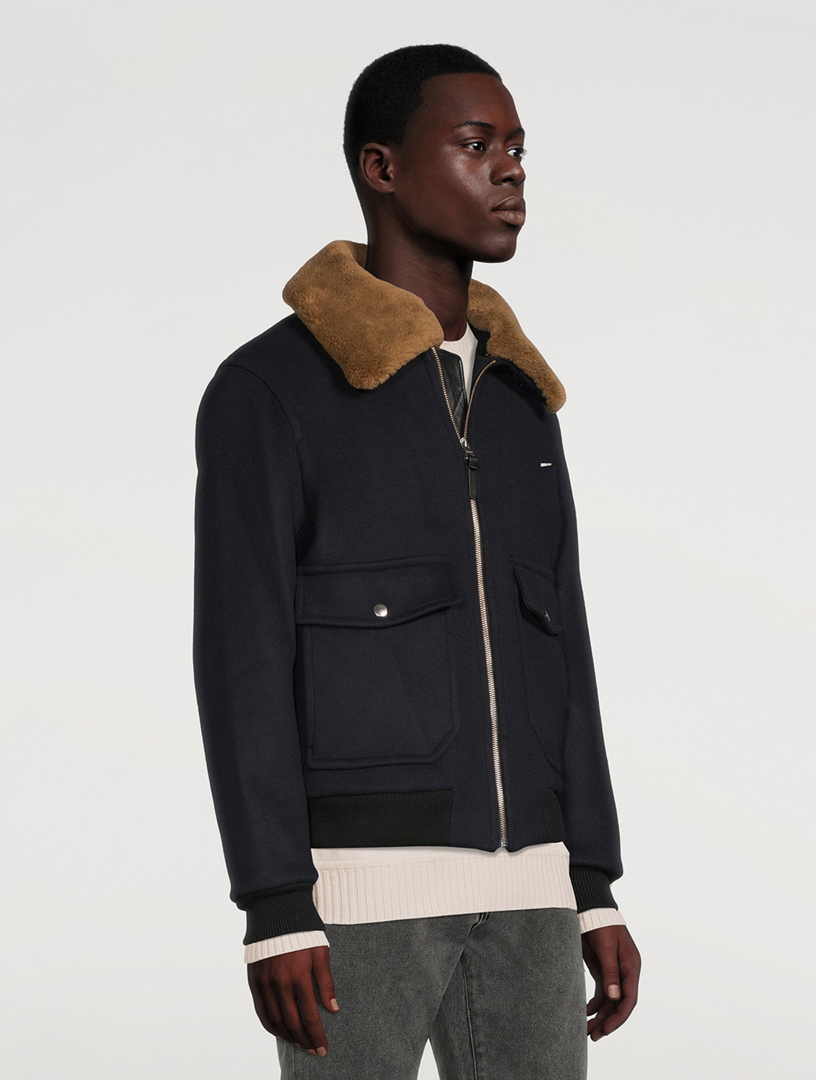 MACKAGE Theo Shearling Trimmed Bomber Jacket Holt Renfrew Very well made.