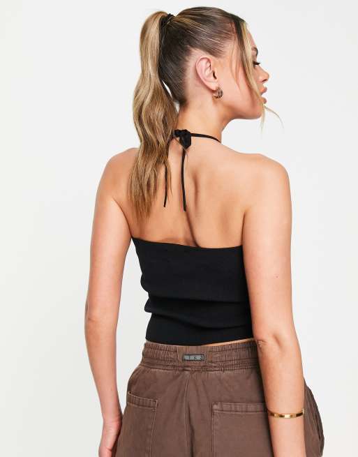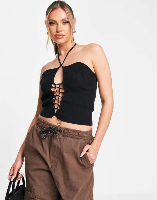 ASOS DESIGN Top in maglia nero allacciato al collo con lacci sul davanti Very well made.