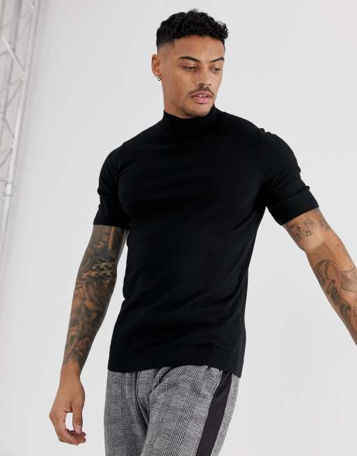 ASOS DESIGN T shirt nera con collo alto attillata in maglia nera Very well made.