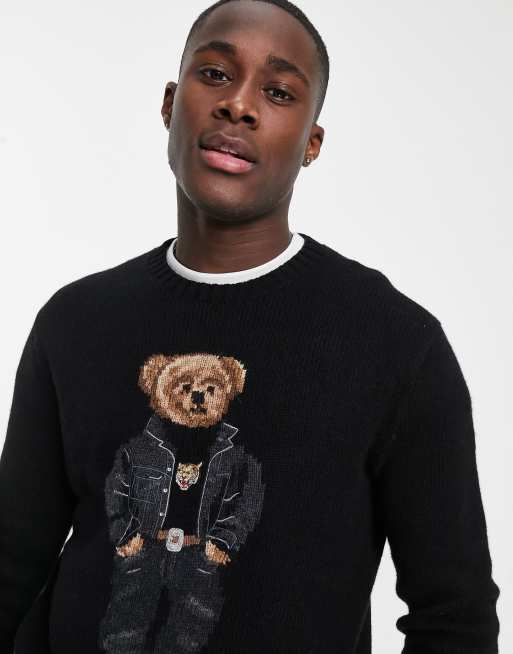 Polo Ralph Lauren Maglione lavorato in lana nero con orso Very well made.