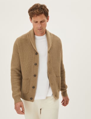 Cotton Blend Ribbed Shawl Collar Cardigan Very well made.
