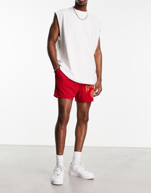 ASOS DESIGN oversized mesh shorts in red with collegiate print Very well made.