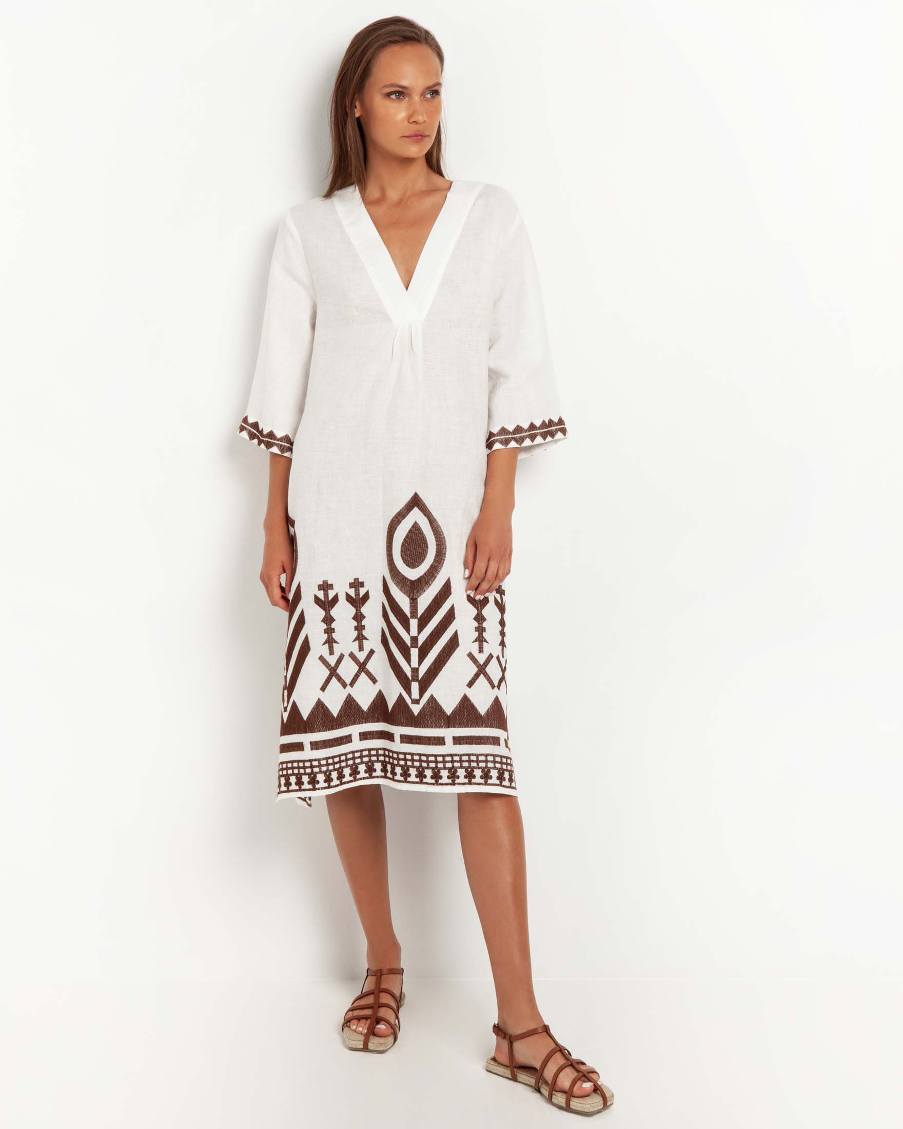 Kaftano midi bianco in lino con maniche tre quarti e ricami a Very well made.