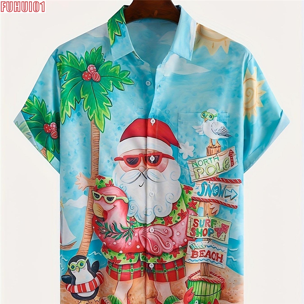 Fuhui01 Men s Hawaiian Shirt With Christmas Santa Claus Print For Very well made.