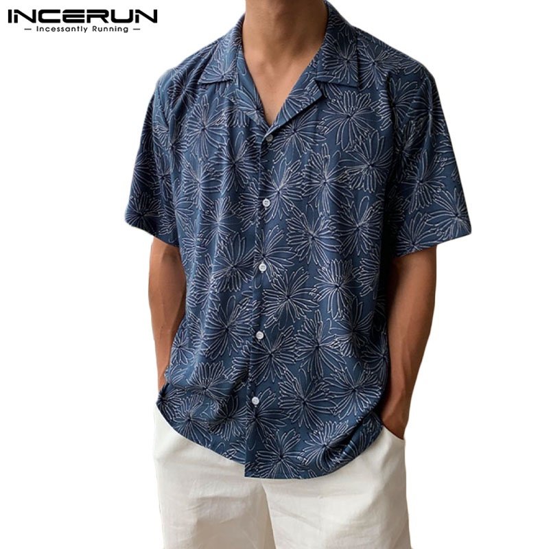 INCERUN Men s Fashion Hawaiian Wind Flower Ice Silk Cuban Neck Very well made.