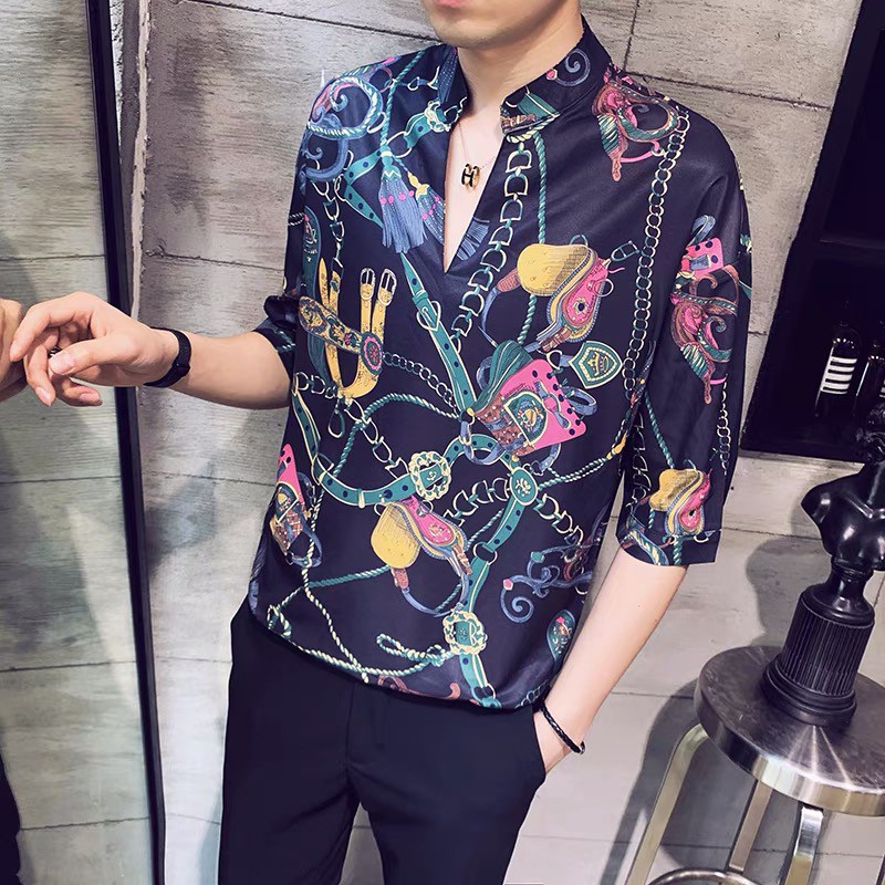 Luxury European Style Mens Floral Printed Short Sleeve Dress Shirt Very well made.