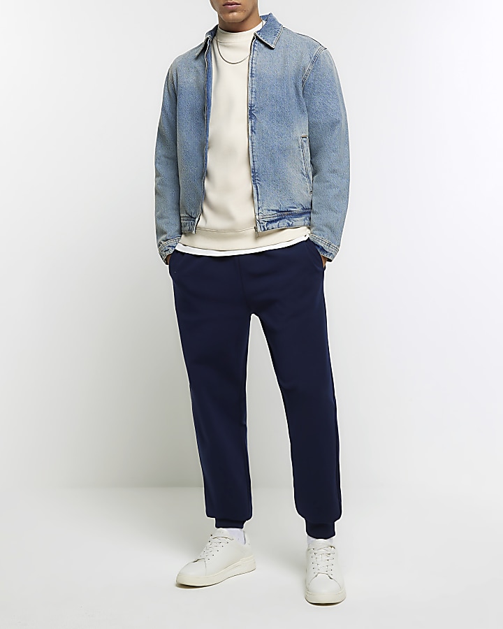 Navy slim fit neoprene cuffed smart joggers River Island Very well made.