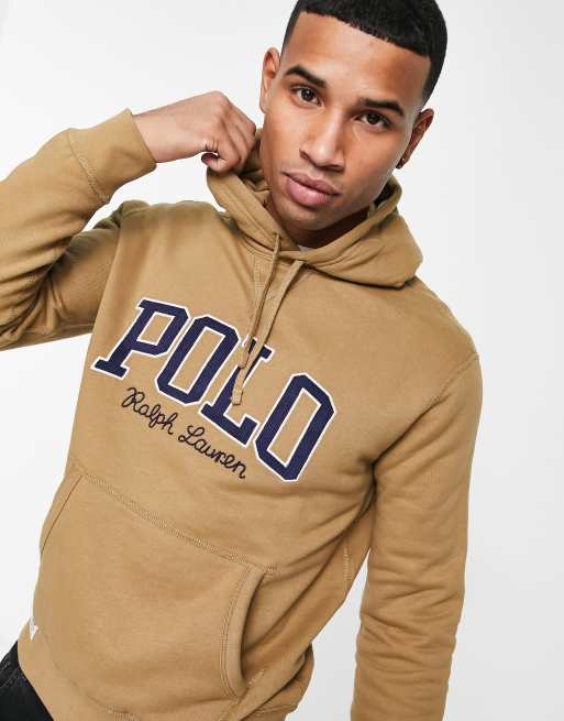 Polo Ralph Lauren collegiate logo fleece hoodie in khaki beige Very well made.