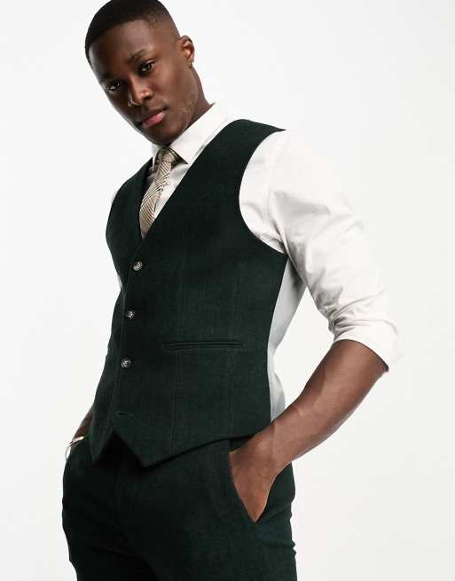 ASOS DESIGN skinny wool mix suit waistcoat in herringbone in green Very well made.