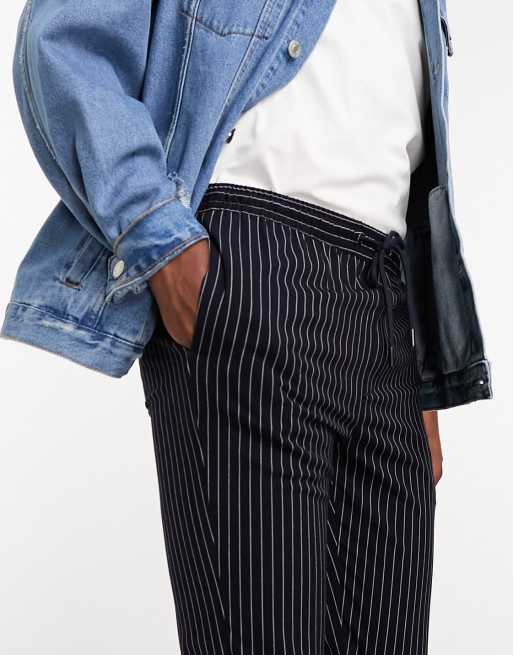 ASOS DESIGN skinny smart joggers in navy pin stripe Very well made.