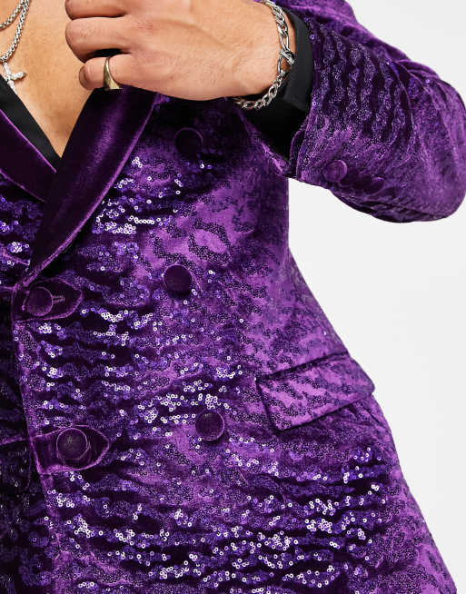 ASOS DESIGN super skinny velvet sequin suit jacket in purple Very well made.