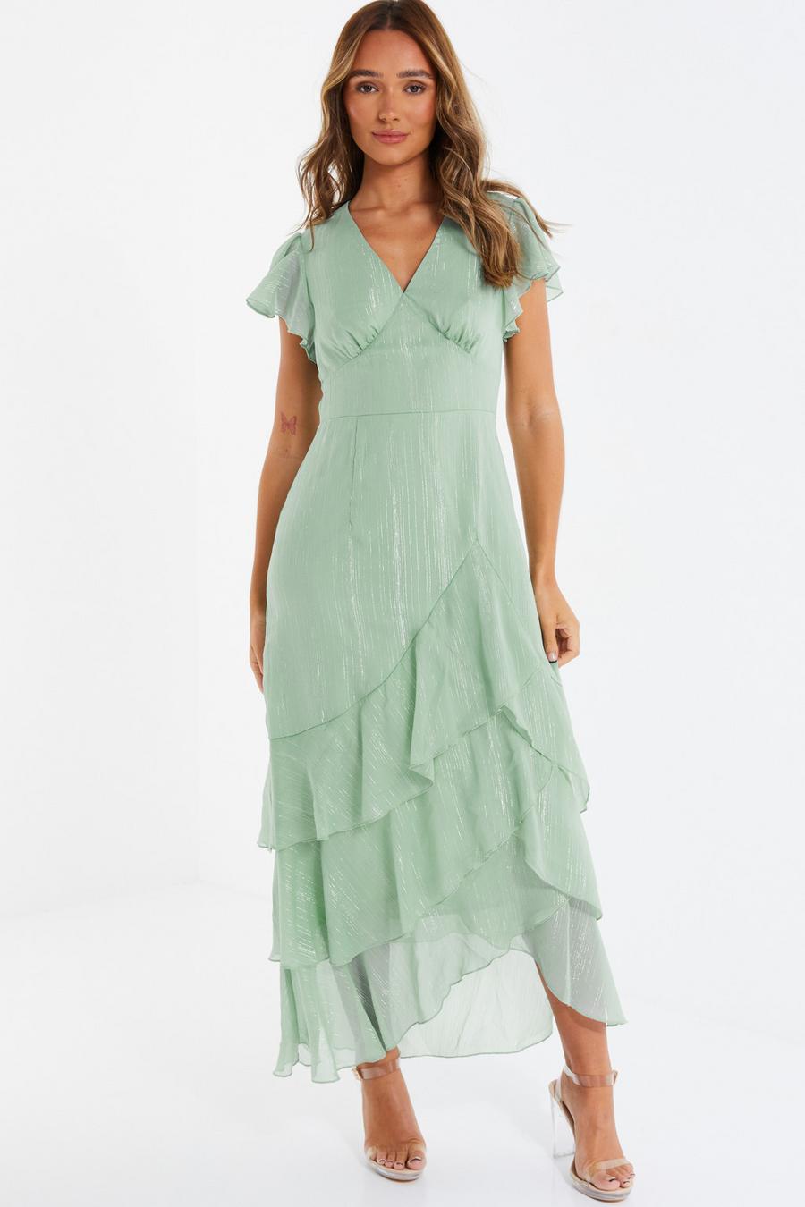 Sage Metallic Chiffon Tiered Maxi Dress Quiz Clothing Very well made.