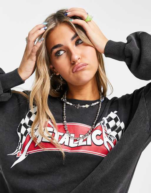 Pull Bear Felpa oversize nero slavato con stampa dei Metallica Very well made.