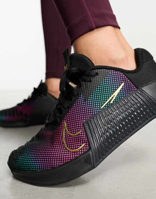 Nike Training Metcon 9 trainers in black and pink metallic Very well made.