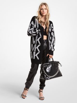 Logo Intarsia Merino Wool Blend Cardigan Michael Kors Very well made.