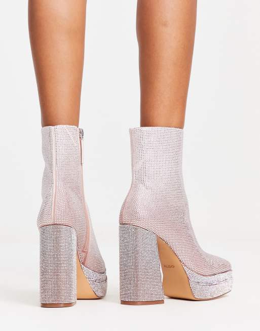 ALDO Erurbag rhinstone platform ankle boots in pale pink Very well made.