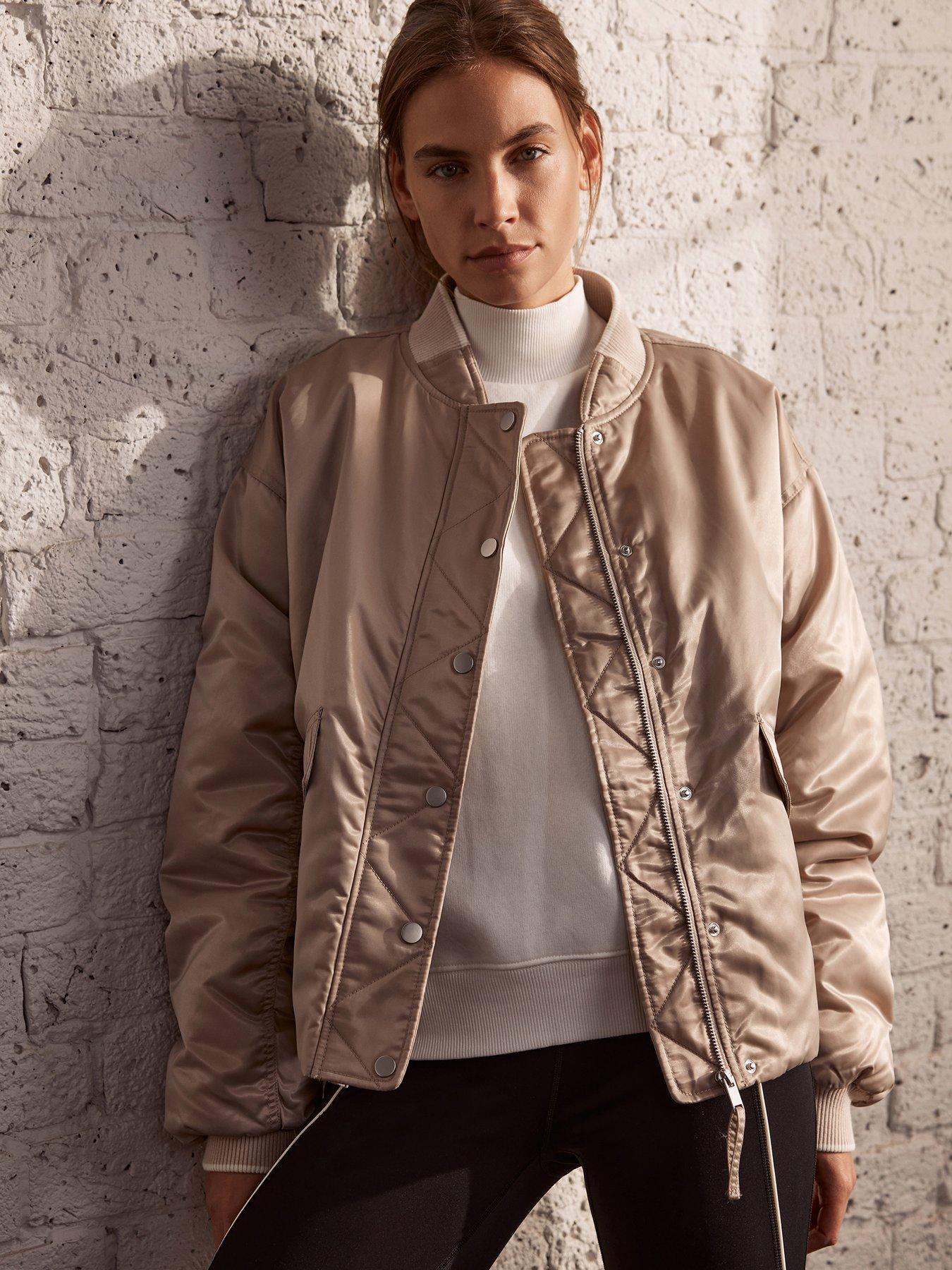 Mint Velvet Satin Bomber Jacket Khaki at John Lewis Partners Very well made.