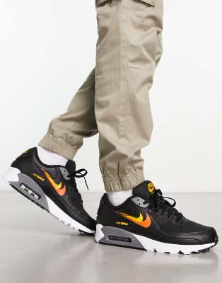 Nike Air Max 90 double swoosh spray trainers in black and orange Very well made.