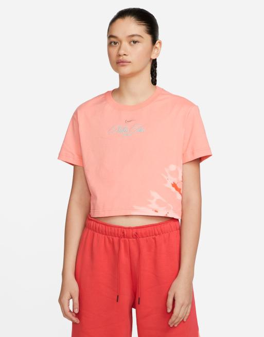 Nike Resortwear Pack tie dye effect crop T shirt in dusty orange Very well made.