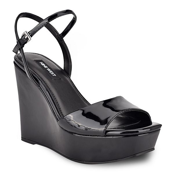 Nine West Black Patent Leather Strappy Wedge Sandals Size 8M eBay Very well made.