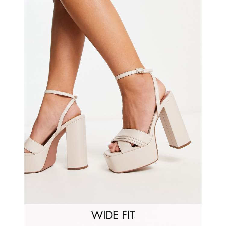 ASOS DESIGN Wide Fit Nocturnal platform high heeled sandals in off Very well made.