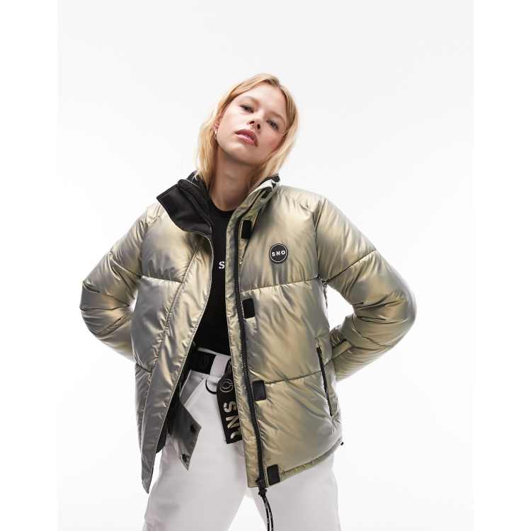 Topshop Sno high shine ski puffer jacket in gold metallic ASOS Very well made.