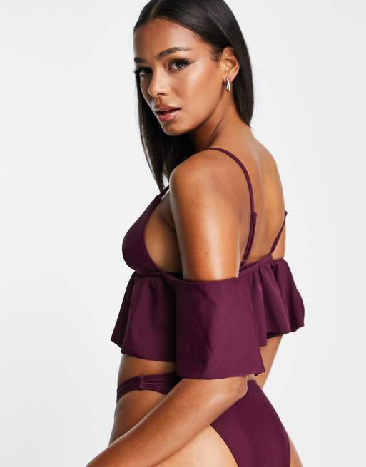 NA KD off shoulder bikini top in plum ASOS Very well made.