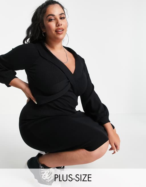 Outrageous Fortune ruffle wrap dress with fluted sleeve in black Very well made.