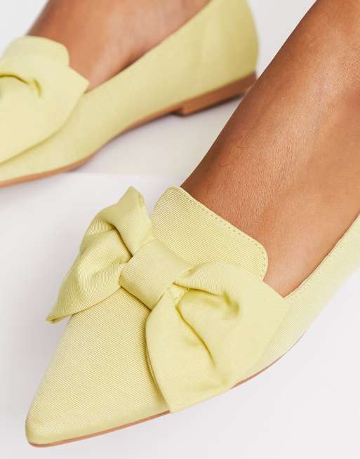 ASOS DESIGN Lake bow pointed ballet flats in lemon Very well made.