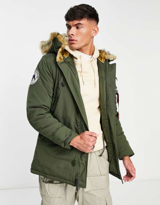 Alpha Industries Polar faux fur trim hooded parka in dark green ASOS Very well made.