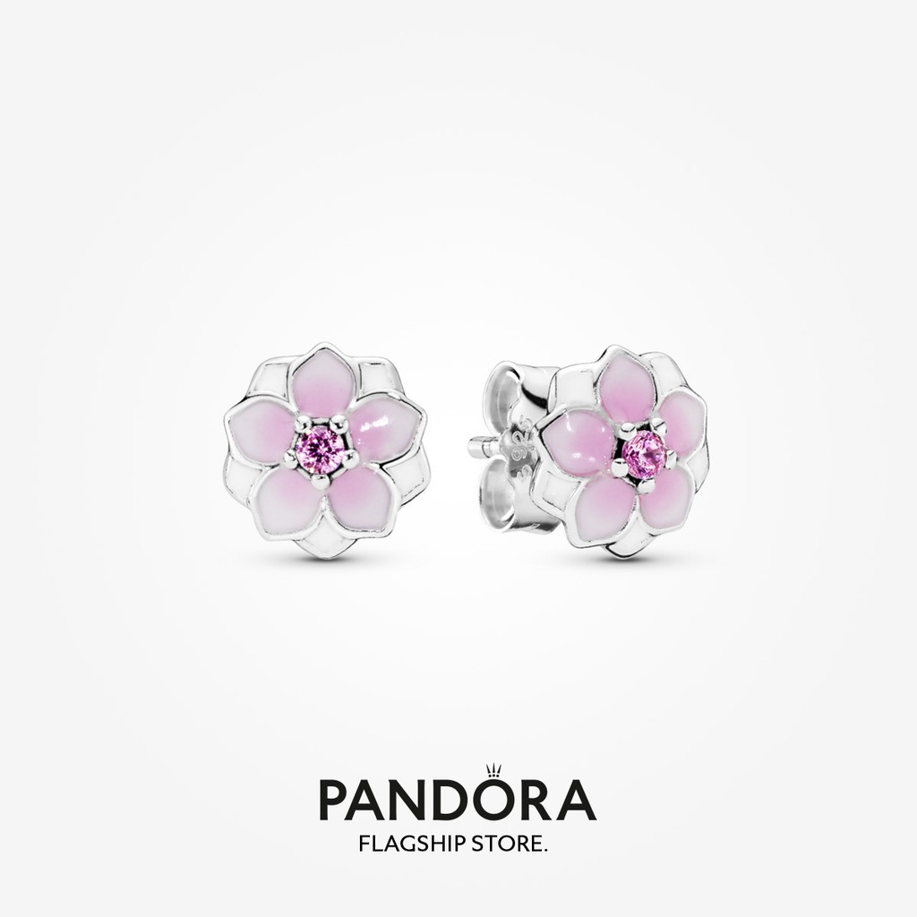 Pink magnolia Stud Earrings Original Box for Pandora 925 Sterling Silver Women Girls flowers Earrings retail Box sets Very well made.