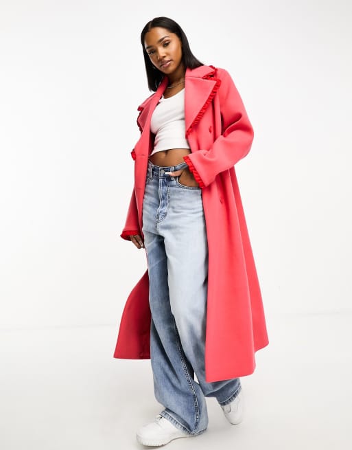 Neon Rose ruffle edged longline cocoon coat in pink Very well made.