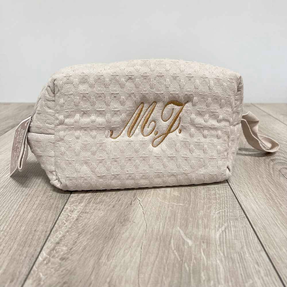 Pochette beauty nido d ape tortora con zip personalizzata Le Very well made.