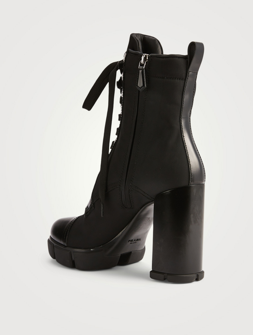 Monolith Re Nylon And Leather Lace Up Heeled Ankle Boots Very well made.