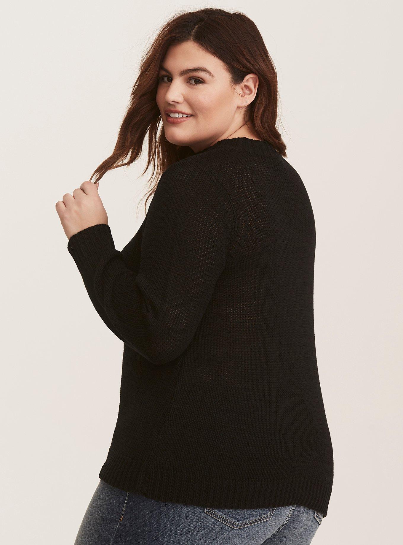 Plus Size Black Long Sleeve Choker Cutout Knit Pullover Torrid Very well made.
