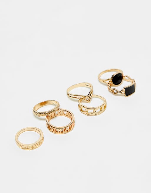 EGO Confezione da 7 anelli dorati a catena con onice ASOS Very well made.