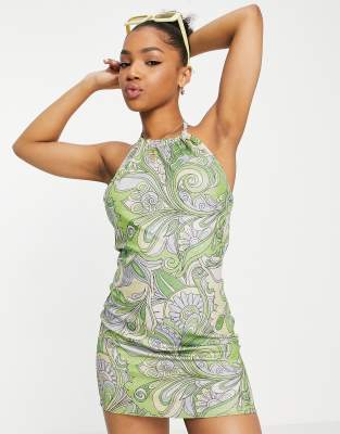 Miss Selfridge halter mini dress in retro shimmer print Multi Very well made.