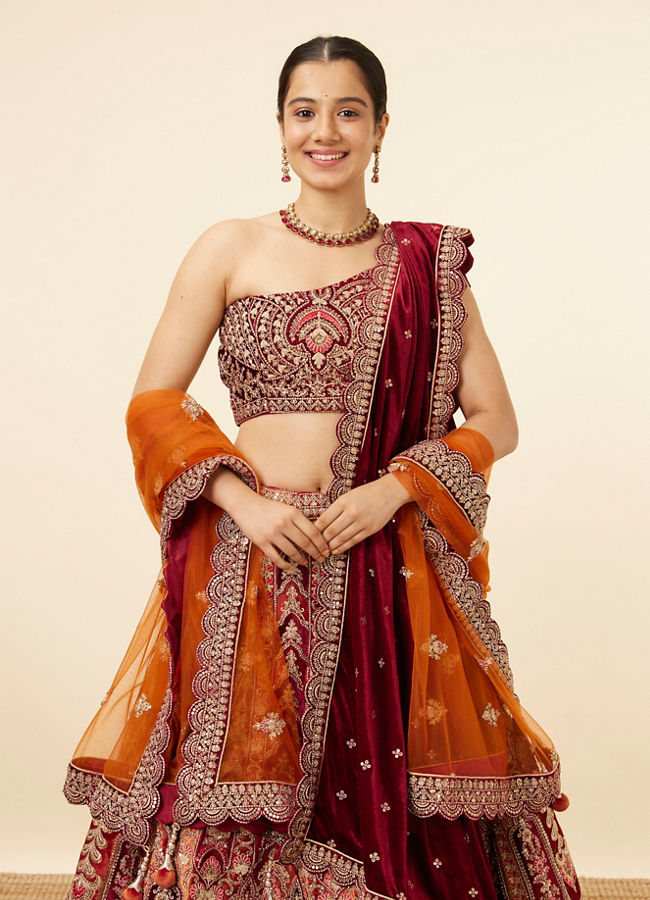 Orange Maroon Embroidered Bridal Lehenga Very well made.
