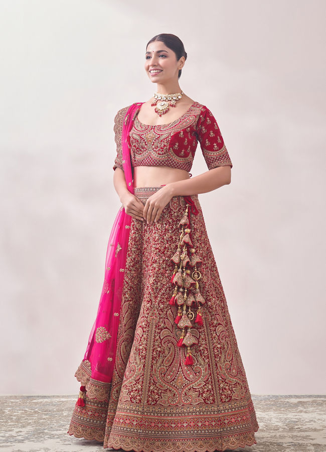 Buy Aurora Red Floral and Paisley Patterned Bridal Lehenga Online Very well made.