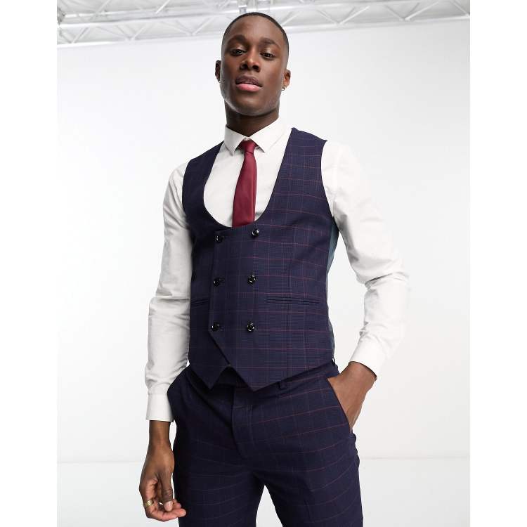 Harry Brown skinny fit double breasted waistcoat in navy red Very well made.