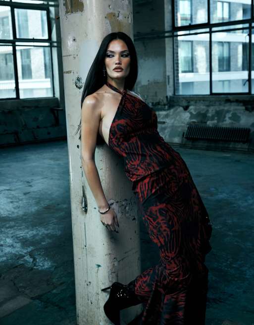 Murci halterneck asymmetric hem maxi dress in red rose print ASOS Very well made.