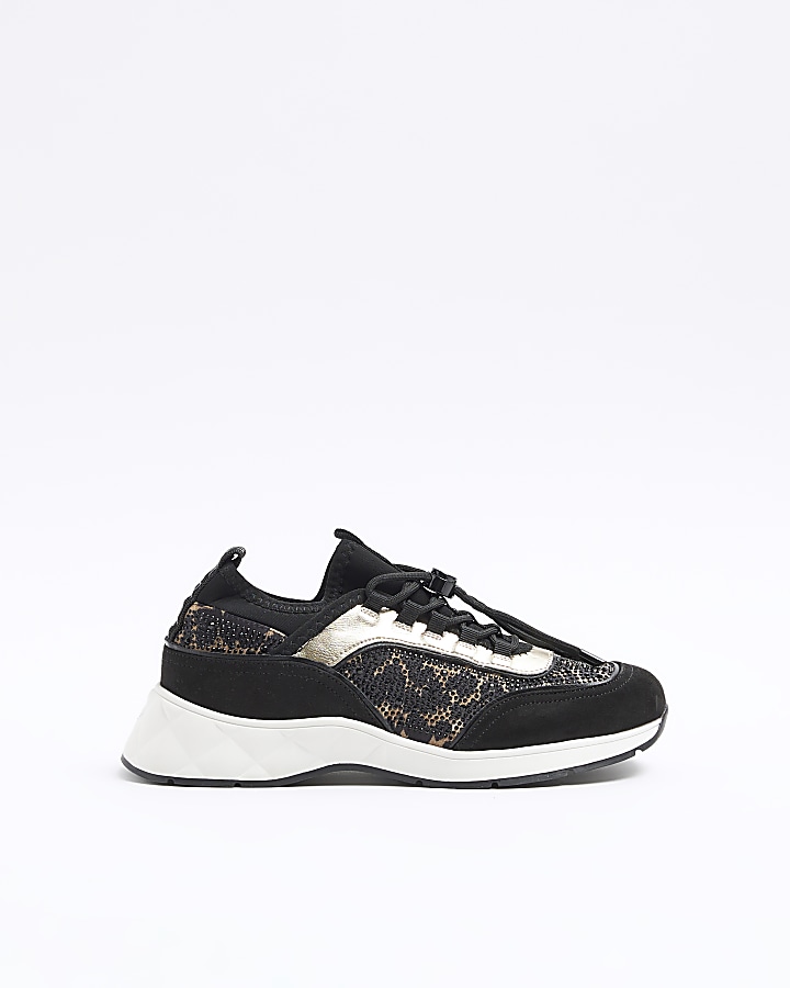 River Island Brown Leopard Print Diamante Slip On Shoes Trainers Very well made.