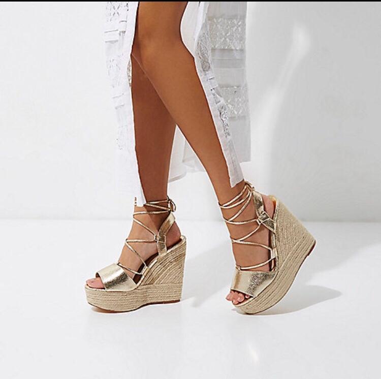 River Island Stitch wedge espadrille sandals in gold Very well made.